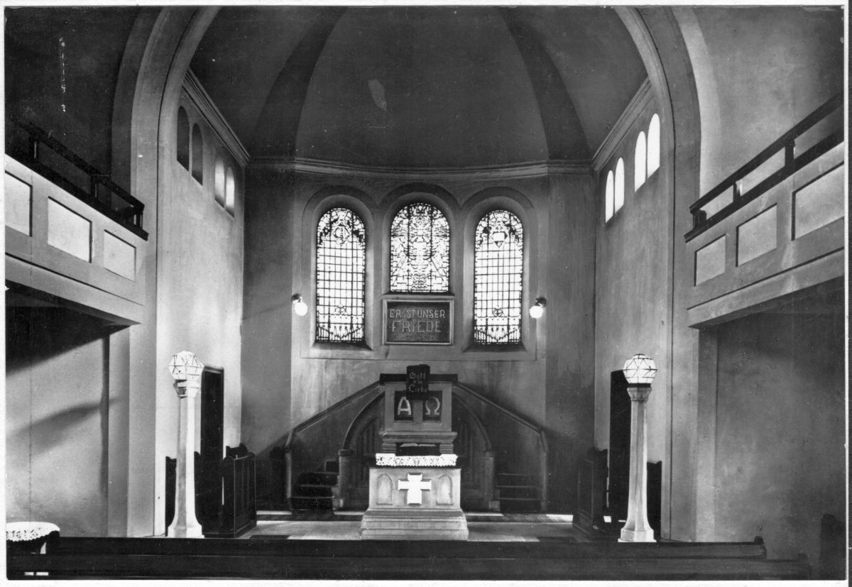 In den Dreißiger Jahren werden in der Kirche die Paramente ausgetauscht. Statt "Gott ist die Liebe" ist nun zu lesen "Jesu hilf siegen". Der tiefere Sinn ergibt sich aus dem Lied 373 aus dem Evangelischen Gesangbuch:
