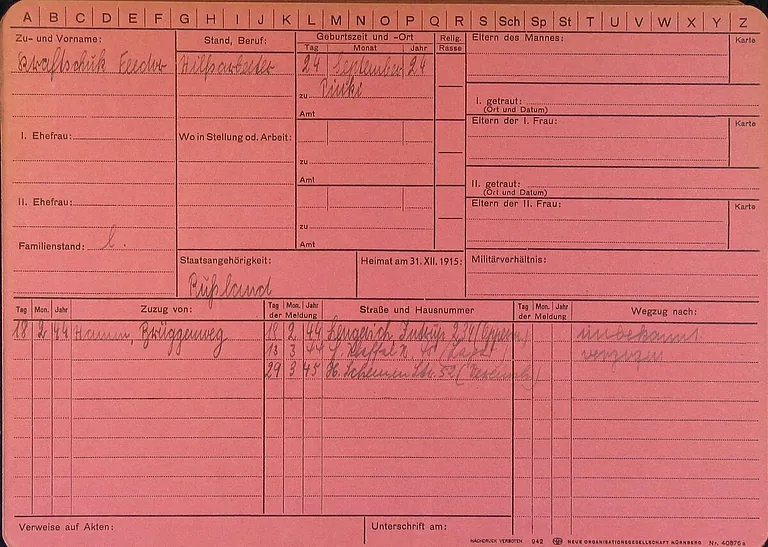 Fedor Krawtschuk (auch Krastschuk oder Kraftschuk) war 19 Jahre alt, als er zum ersten Mal am 1.6. 1944 in Hamm als Zwangsarbeiter registriert wurde.