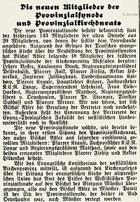 Am 26. Januar ernennt sich Reichsbischof Müller zum Landesbischof der evangelischen Kirche der altpreussischen Union (Saarbrücken bis Königsberg). Dadurch wird er der Vorgesetzte auch für Westfalen.